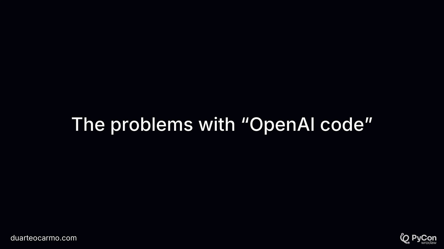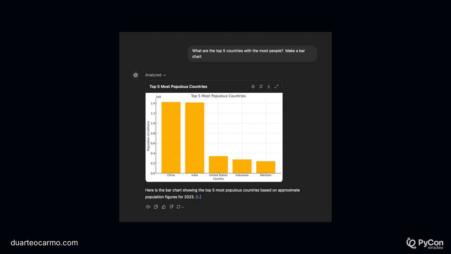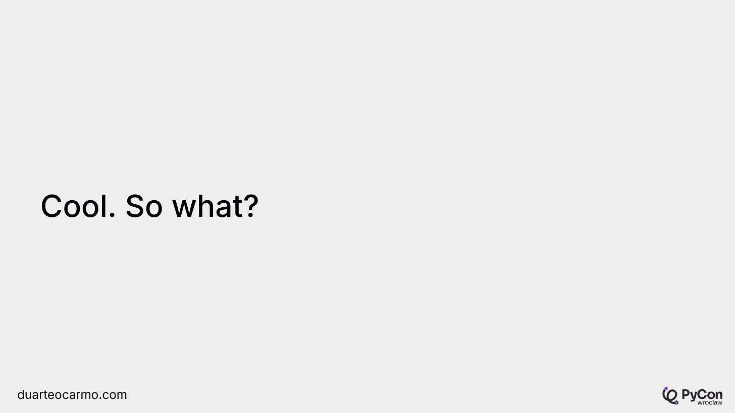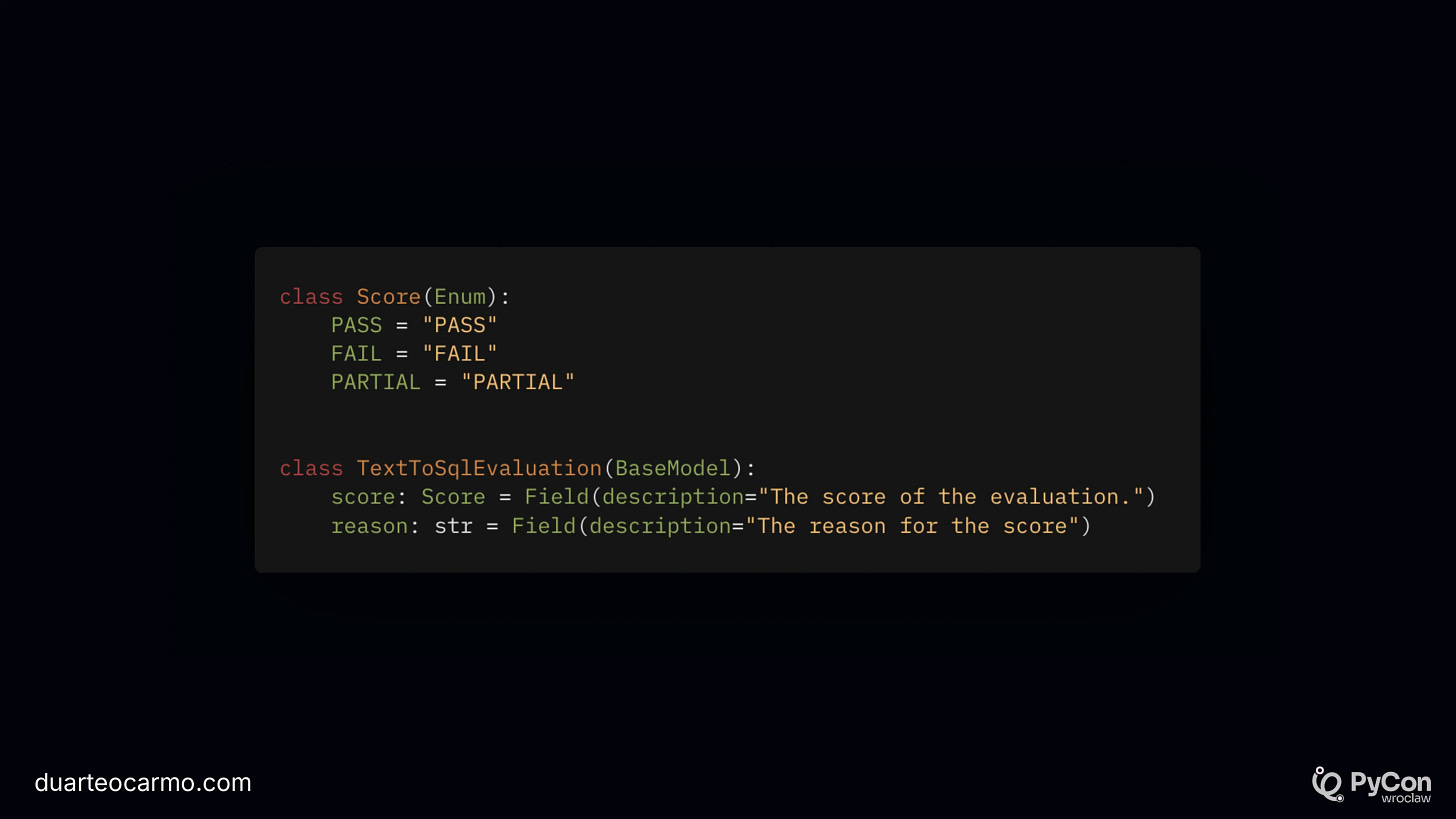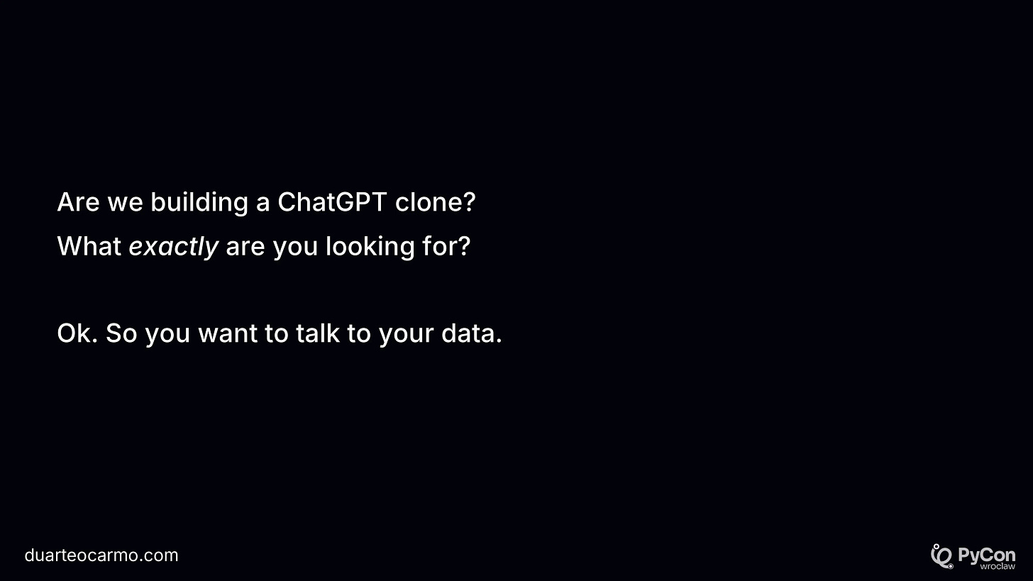 Last year I made an effort to speak less and learn more. However, I still had the opportunity to present at a couple of conferences. One of them was PyCon Wroclaw. The main goal was to talk about a couple of interesting paradigms I've come across while using LLMs to help me solve some Text-to-SQL problems.