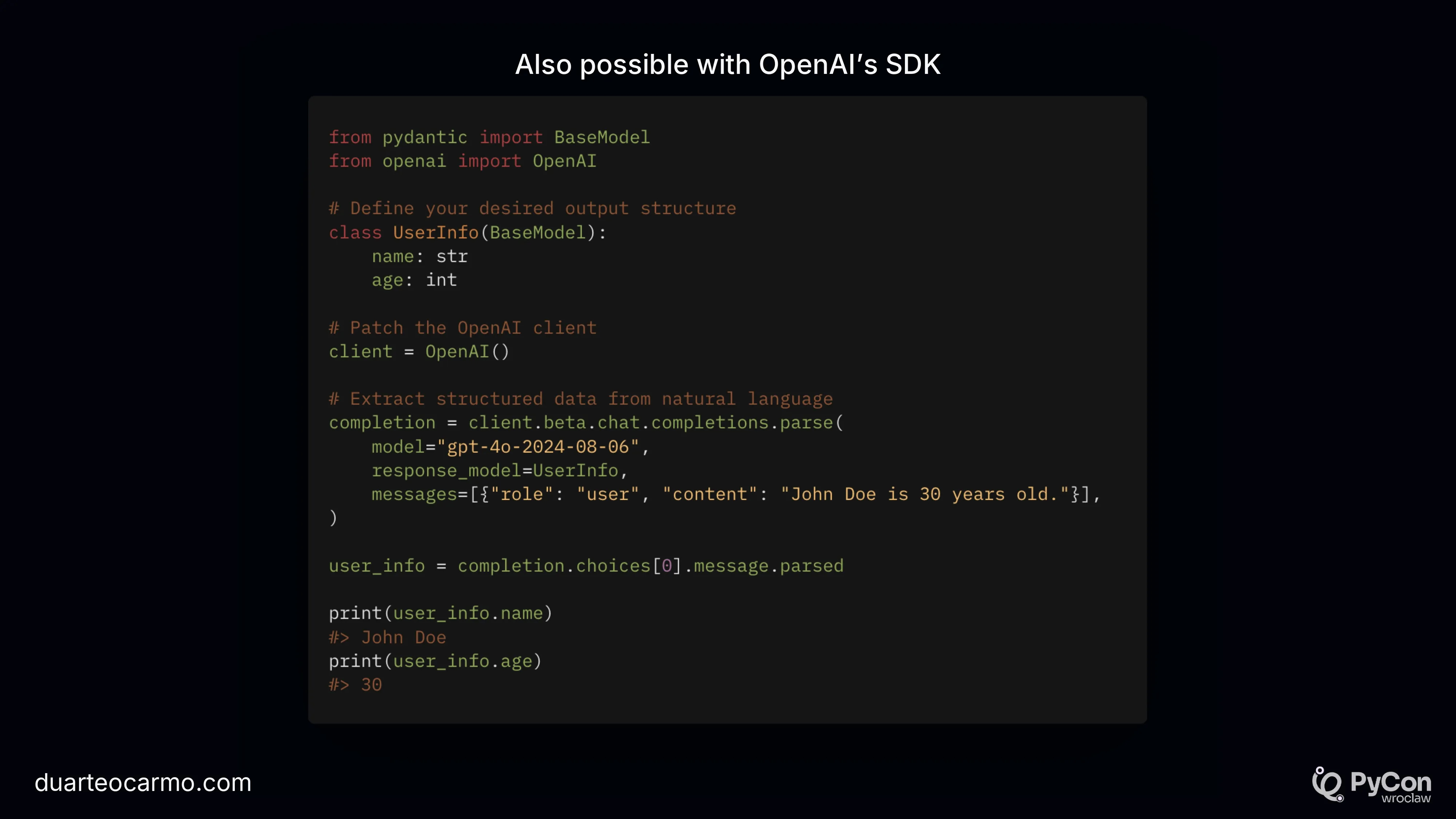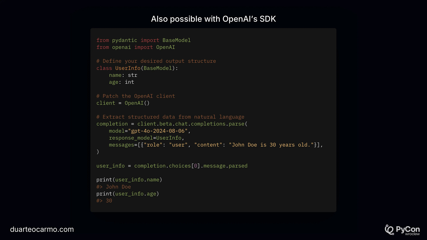 Of course, you don't need to use instructor. You can go with Structured Outputs as well.